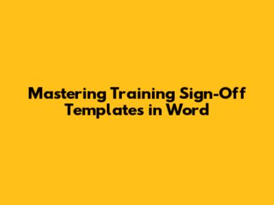 Mastering Training Sign-Off Templates In Word
