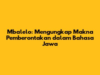 Mbalelo: Memahami Pemberontakan Dalam Bahasa Jawa