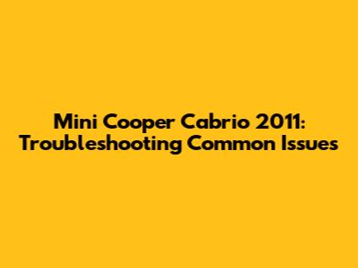 Mini Cooper Cabrio 2011: Troubleshooting Common Issues
