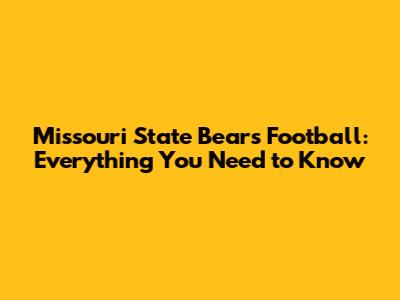 Missouri State Bears Football: Everything You Need To Know