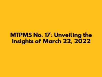 MTPMS No. 17: Unveiling The Insights Of March 22, 2022