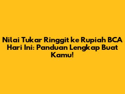 Hai, guys! Lagi cari tahu berapa sih kurs Ringgit Malaysia (MYR) ke Rupiah Indonesia (IDR) lewat Bank BCA hari ini? Tenang, kamu datang ke tempat yang tepat! Artikel ini bakal jadi panduan super lengkap buat kamu yang mau tukar uang, kirim uang, atau sekadar penasaran sama pergerakan nilai tukar mata uang serumpun ini. Bank BCA sendiri dikenal sebagai salah satu bank terbesar dan terpercaya di Indonesia, jadi wajar banget kalau banyak yang mengandalkan informasi kurs dari mereka. Nah, sebelum kita diving lebih dalam, penting banget buat kamu tahu kalau nilai tukar itu fluktuatif, alias bisa berubah sewaktu-waktu. Jadi, angka yang kamu lihat sekarang bisa jadi beda besok, atau bahkan beberapa jam lagi. Makanya, ngecek kurs secara berkala itu crucial, terutama kalau kamu punya rencana transaksi besar.