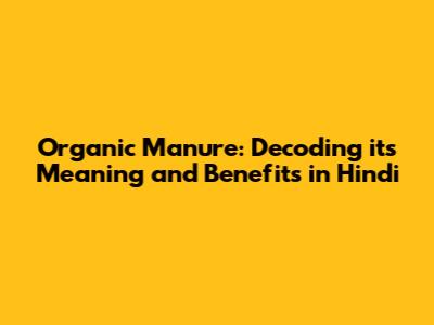 Understanding Organic Manure (जैविक खाद) in Hindi
