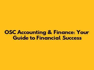 OSC Accounting & Finance: Your Guide To Financial Success