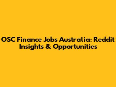 OSC Finance Jobs Australia: Reddit Insights & Opportunities