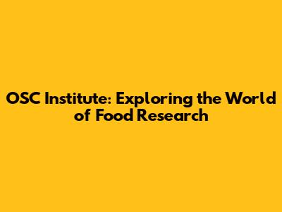 OSC Institute: Exploring The World Of Food Research
