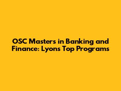 OSC Masters In Banking And Finance: Lyon's Top Programs