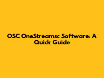 OSC OneStreamsc Software: A Quick Guide