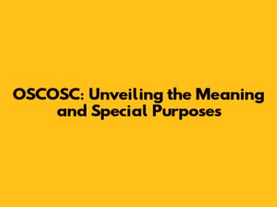OSCOSC: Unveiling The Meaning And Special Purposes