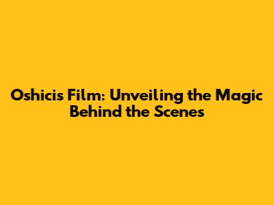 Oshicis Film: Unveiling The Magic Behind The Scenes
