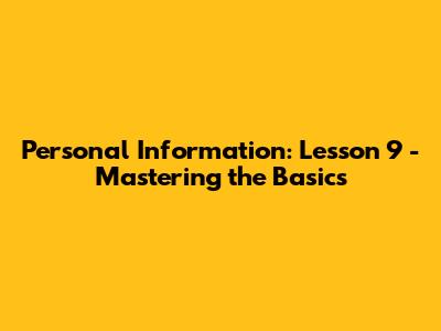 Personal Information: Lesson 9 - Mastering The Basics