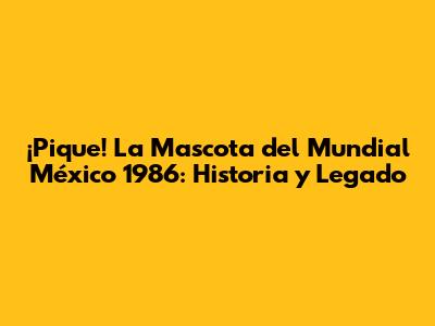 ¡Pique! La Mascota Del Mundial México 1986: Historia Y Legado
