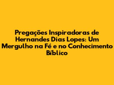 As pregações de Hernandes Dias Lopes oferecem uma base sólida para a fé cristã, com ênfase na soberania de Deus, na graça salvadora e na importância da vida cristã. Elas são um convite para um mergulho profundo na fé, para um entendimento maior da Bíblia e para uma vida transformada pelo evangelho. Se você busca inspiração, conhecimento e transformação, as pregações de Hernandes Dias Lopes são um excelente recurso.