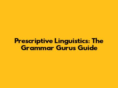 Unveiling Prescriptive Linguistics: What's the Deal?