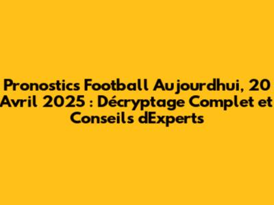Pronostics Football Du 20 Avril 2025 : Analyses & Conseils Experts