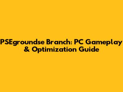 PSEgroundse Branch: PC Gameplay & Optimization Tips