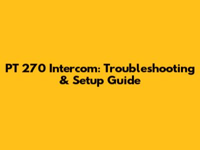 PT 270 Intercom: Troubleshooting & Setup Guide