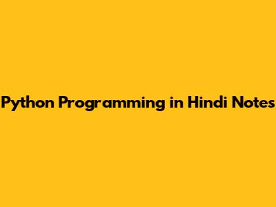 Python Programming: Hindi Notes For Beginners