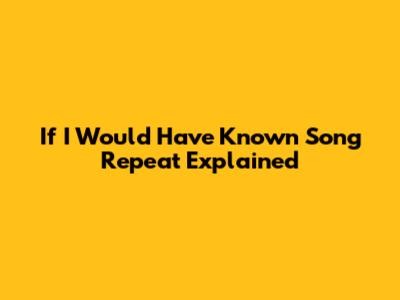 Repeating Songs: If I Would Have Known Explained