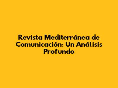 Revista Mediterránea De Comunicación: Guía Completa