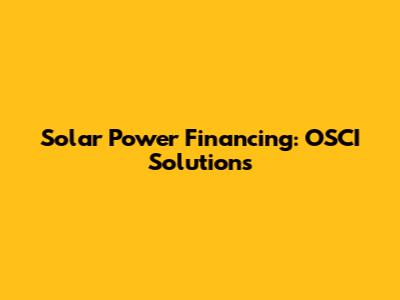 Solar Power Financing: OSCI Solutions