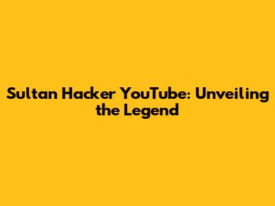 Sultan Hacker YouTube: Unveiling The Legend