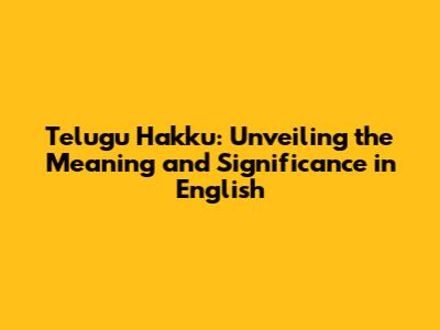 Telugu Hakku: Exploring The Meaning & Significance