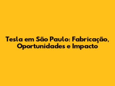 Tesla Em São Paulo: Fabricação, Oportunidades E Impacto