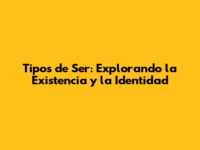 Tipos De Ser: Explorando La Existencia Y La Identidad