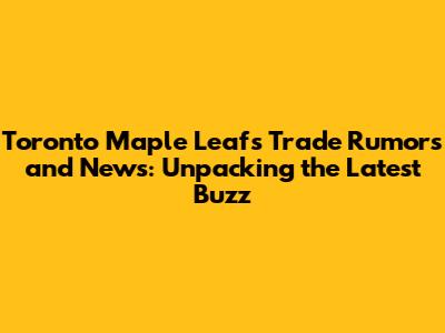 Toronto Maple Leafs Trade Rumors And News