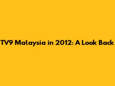 TV9 Malaysia In 2012: A Look Back