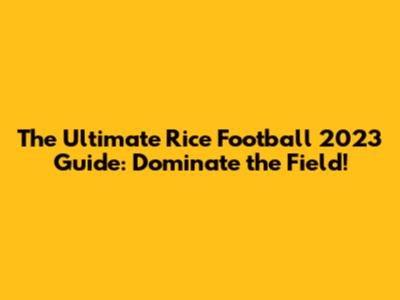 Ultimate Rice Football 2023 Guide
