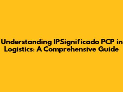 Understanding IPSignificado PCP In Logistics: A Comprehensive Guide
