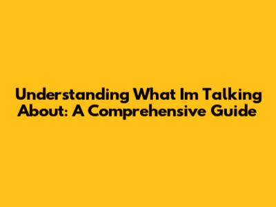 Understanding What I'm Talking About: A Comprehensive Guide