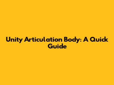 Unity Articulation Body: A Quick Guide