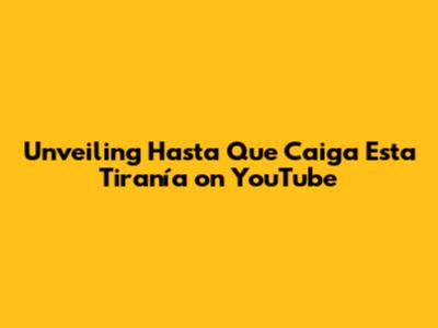 Unveiling 'Hasta Que Caiga Esta Tiranía' On YouTube