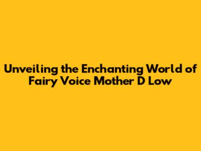 Unveiling The Enchanting World Of Fairy Voice Mother D Low
