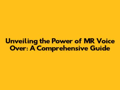 Unveiling The Power Of MR Voice Over: A Comprehensive Guide