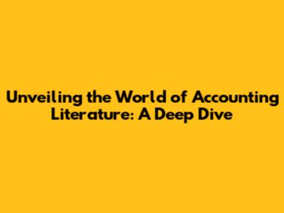 Unveiling The World Of Accounting Literature: A Deep Dive