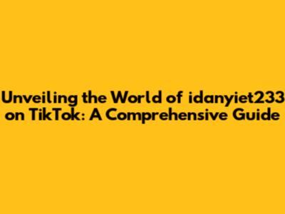 Unveiling The World Of Idanyiet233 On TikTok: A Comprehensive Guide