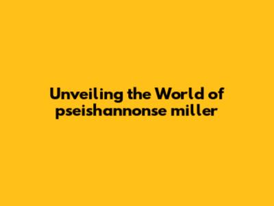 Unveiling The World Of Pseishannonse Miller
