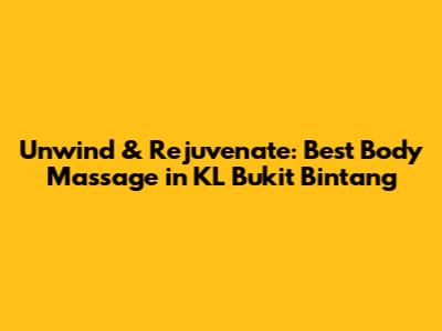 Hey guys! If you're looking for the ultimate relaxation experience in the heart of Kuala Lumpur, then you're in the right place. We're diving deep into the world of body massage in KL Bukit Bintang, exploring the best spas, techniques, and everything you need to know to melt your stress away. Bukit Bintang, or BB as the locals call it, is a vibrant hub known for its shopping, dining, and of course, its fantastic massage options. Let's get into it!