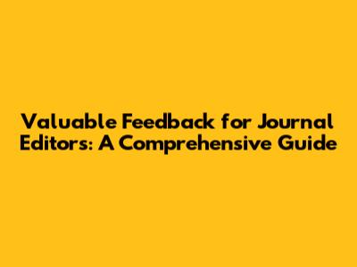 Valuable Feedback For Journal Editors: A Comprehensive Guide