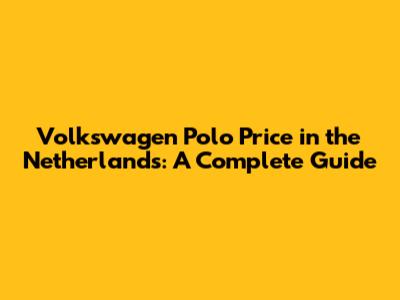 Volkswagen Polo Price In The Netherlands: A Complete Guide