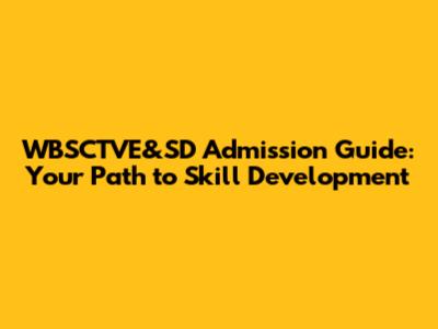 WBSCTVE&SD Admission Guide: Your Path To Skill Development